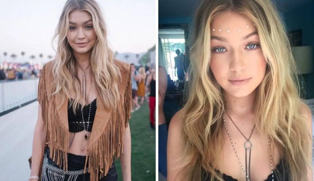 Supermodel Gigi Hadid posted pictures of herself in jewelry that was perfect for the hippie vibe at Coachella 2015. She wore body chains and pearls on her forehead. Gigi taught a master class on how to accessorize for a festival.