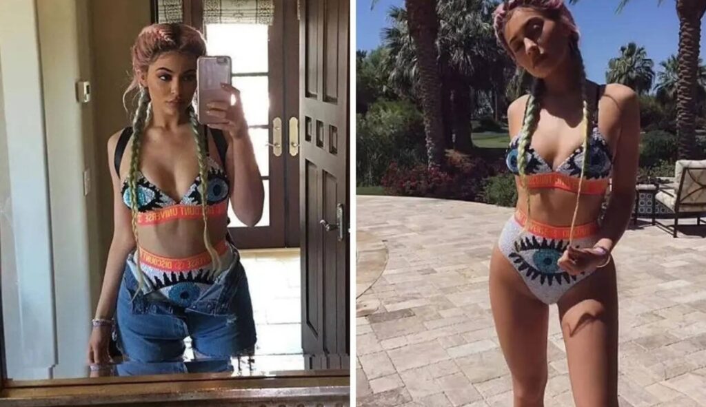 We thought the beauty mogul and influencer’s look at Coachella in 2016 was great. She had braids in different colors and wore a Discount Universe evil eye sequin bikini. At Coachella, she looked like a real icon.